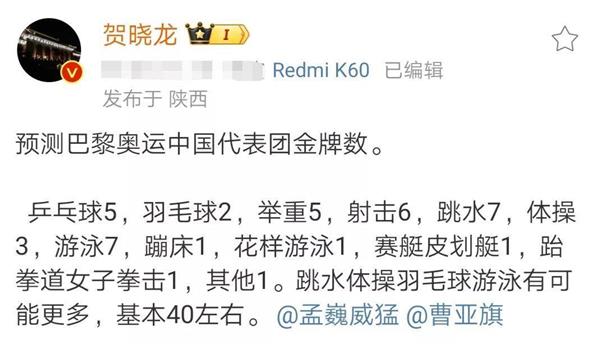 贺晓龙提到的五枚乒乓球金牌表明,他对国家乒乓球队赢得本届奥运会的所有五项冠军持乐观态度,即男子单打、男子团体、女子单打、女子团体和混合双打。根据上个月中国乒乓球协会公布的运动员名单,女子单打选手是孙颖莎和陈萌,女子单打选手是孙颖莎、陈萌和王曼玉。