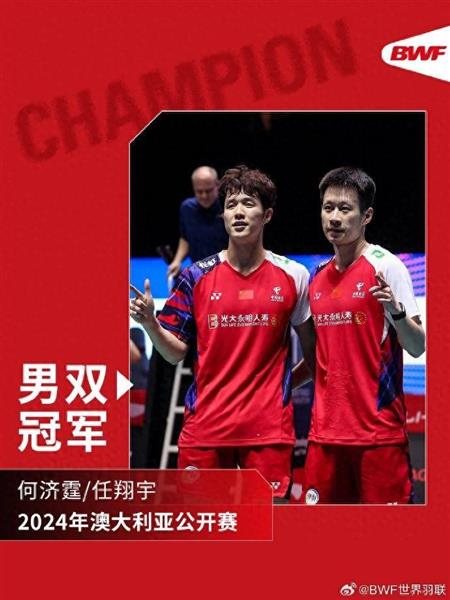 中国组合任翔宇和何济霆赢得了澳大利亚羽毛球公开赛男双决赛的冠军。