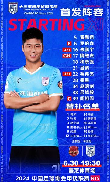 大连英博首发阵容为:17-隋维杰;34-赵明剑,5-晋鹏翔,6-罗伯森,18-小强;38-吕焯毅,21-吕鹏,28-费玉,22-毛伟杰(U21);39-阎相闯,16-朱鹏宇(U21)。
