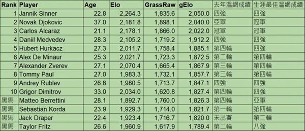 但是由于目前对Djokovic的伤势恢复情况并不了解,所以就今年的状态和之前的比赛结果而言,我个人认为新科球王Sinner在今年的温布顿暂时是赛前的冠军。在去年开始加强发球并提高稳定性之后,Sinner成为了整个巡回赛中最引人注目、最值得信赖的球员。就过去两次温布顿只输给Djokovic一人而言,Sinner可以说是目前最能与Djokovic竞争的两名球员之一。更有甚者,他能在哈雷和网上获得冠军。