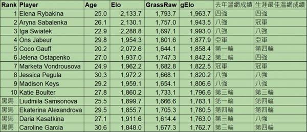 其它的就像Gauff、Pegula和Ostapenko等人在草地上都有一定的威胁和力量,地主好手Katieenko Boulter今年一鸣惊人,有机会在温布顿表现出色。在黑马部分,Alexandrova,一个发球强大的好球员,曾经在温布顿取得了不错的成绩,是其他种子必须警惕的对手。