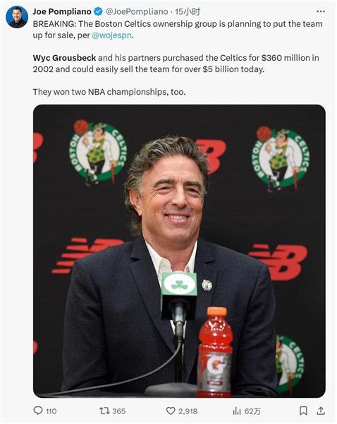领导查了一下当时的报道,格罗斯贝克在2002年买凯尔特人的时候拿不到3.6亿美元。他先是卖掉了房子,支付了球队的押金,然后找到了20多个合伙人,最后买下了凯尔特人。现在选择卖凯尔特人也是这些合伙人的一致决定。
