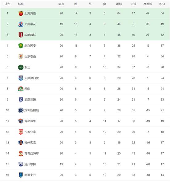 下半场,上海海港疯狂压制,主场大比分横扫青岛海牛,连续15场比赛获胜。上海海港保持双线不败战绩,总分提升至54分,稳居中超榜首。青岛海牛赢了三场比赛,足协杯被中国甲级球队南京城淘汰。回到联赛后,他们大比分输了,保级区领先优势还剩2分。