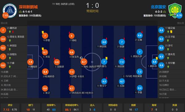 整场比赛中,深圳新鹏城的控球率仅为40%,但他们却有18次射门机会,其中5次射正。相比之下,北京国安的控球率较高,射门次数为11次,但射正仅3次。尽管北京国安在控球上占优势,却缺乏有效的直塞威胁,犹如老奶奶尝试吃螃蟹,啃得费劲却难以下咽,一不小心还可能划伤了手。