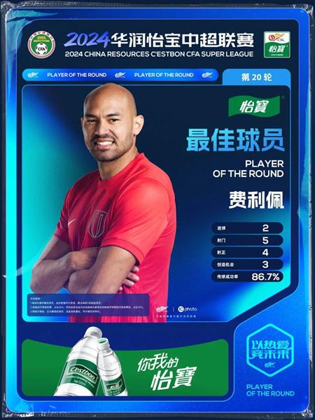 最佳评选|费利佩荣膺中超第20轮最佳球员