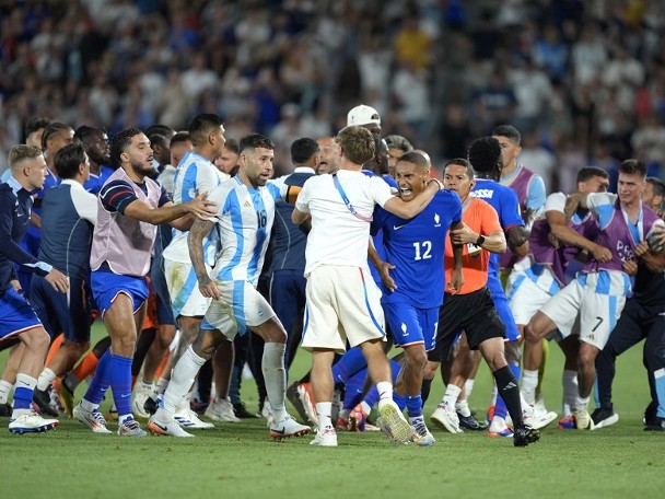 周六(3日)凌晨,奥运会男子足球前八名发生了严重冲突。东道主法国以1-0击败阿根廷后,他获得了权力。赛后,22岁的中场安素米洛特故意走到对手面前庆祝挑衅。阿根廷球员立即进行了热反击,两队球员加入了进来「群殴」,场面十分混乱,始作俑者安素米洛特被球证出示红牌,将被停赛,无缘四强对埃及。