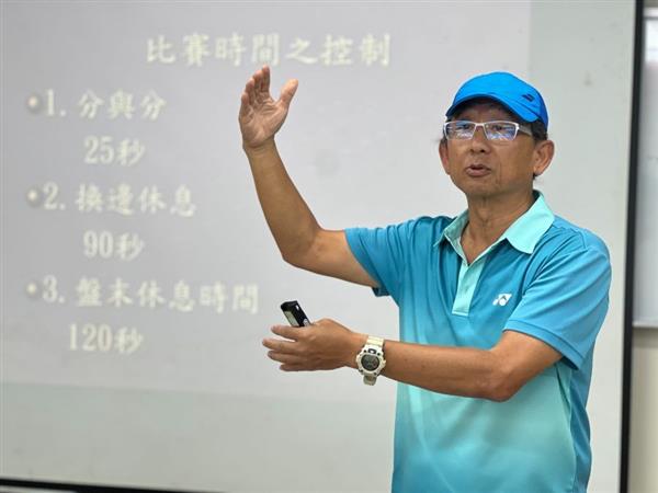 第二节课由中华民国网球协会秘书长王凌华老师指导「行为准则」,在伤停规则中,每个部位的治疗时间限制为一次,一次治疗时间为三分钟。当出现抽筋时,只能在换边或盘末休息时间接受保护人员的治疗,也可以在换边或盘末接受两次完整的换边治疗时间(放弃两次比分)。随后,王凌华老师提醒同学们:「在国内比赛中,任何一方球员都会拨动原本在球场上的球,直接丢分。」取消这一规则;并且关于「指导」另一方面,团体赛在换边的时候可以接受指导,但是每场比赛的第一局结束和决胜局的换边是不允许指导的。