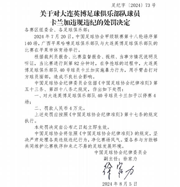 但愿卡兰加能从这次禁赛中吸取教训,在场上和场下,都能变得更专业,帮助球队取得更多进球!