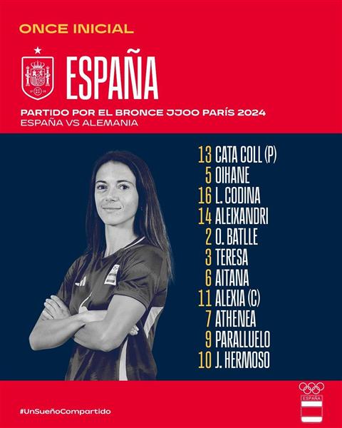 8月9日北京时间今晚211日:西班牙对德国的奥运女足铜牌比赛将开始。双方首发名单已公布,具体如下: