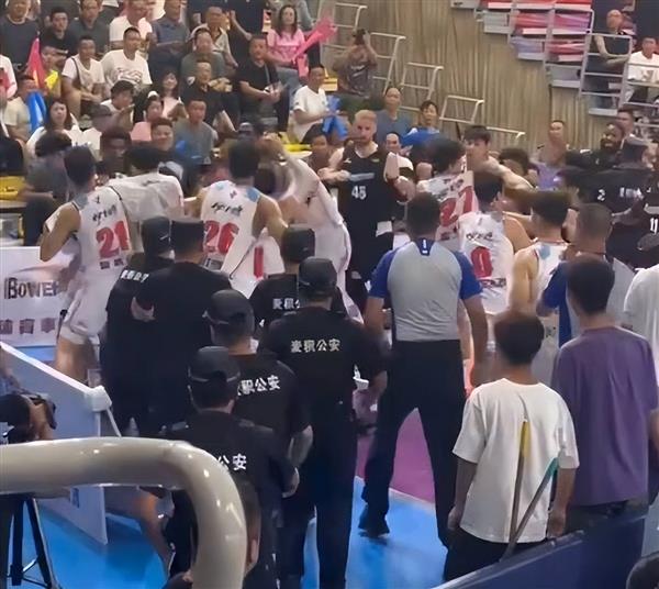 从现场的视频中,我们可以发现裁判从一开始就在和双方球员交流。只是新疆男篮穿着白色比赛服的球员很快就围了过来!没想到,中间的裁判在交流,一个穿着黑色4号比赛服的黑人球员,一走过来就推着新疆男篮0号比赛服的球员。正是4号球员的这个动作激怒了0号球员。然后他也反击了。尤其是李炎哲,他用腿踢对手,齐麟也很凶,直接用拳头打对手!然后新疆所有的男篮球员都围了过来,开始了!然而,警察不停地吹,但警察不停地吹。