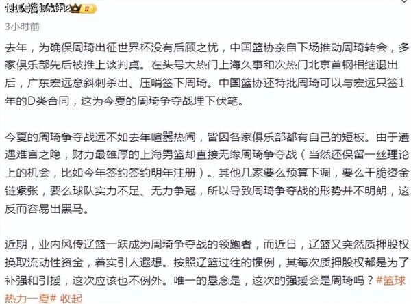 这个夏天,周琦的俱乐部选择确实有限,上海成为最有可能的下家。不过,由于各种原因,北控放弃了引进本土球员的计划,已经签下了沈梓捷,因此退出了对周琦的争夺。而广东、辽宁和北京三家俱乐部几乎是周琦少数的选择。由于北京的手续相对复杂,他们不太可能像其他俱乐部那样迅速作出重要决定,除非周琦团队能够保持足够的耐心。