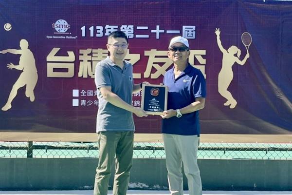 民国网球协会秘书长王凌华向台积电网球社陈孟伟致谢