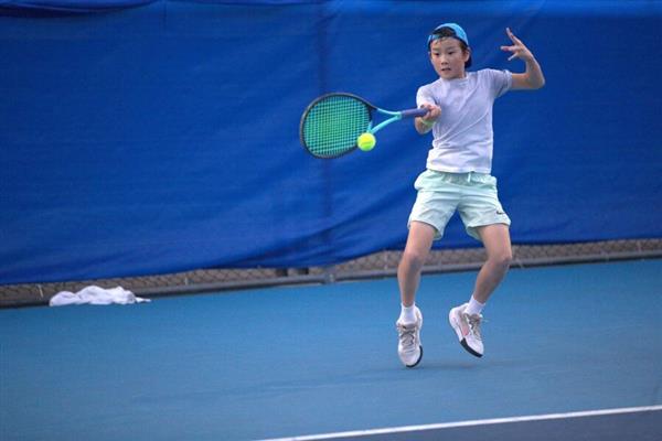 14岁男子组会外黑马来自纽约唐英皓,今天连赢4场,勇闯明日第二轮。