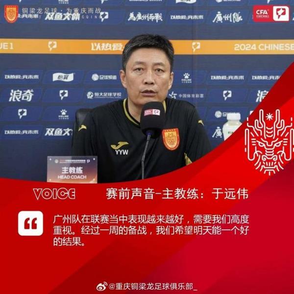 教练于远伟说:“广州队在联赛中表现越来越好,需要我们高度重视。经过一周的准备,我们希望明天能取得好成绩。”