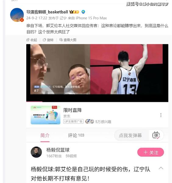 郭艾伦在社交媒体上回应杨毅团队的言论,表示:“这种说法真是无稽之谈,究竟目的是什么?这个世界实在太疯狂了。”(这算是辟谣了吧?)