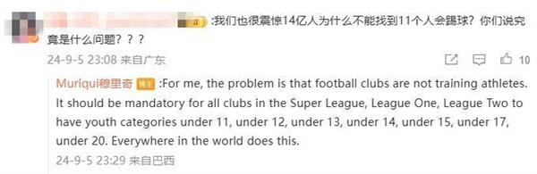 粉丝:我们也对14亿人为什么找不到11人踢足球感到震惊?你们到底怎么说??
