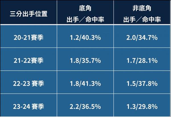 首先是三分投射的命中率。就数据而言,J-事实上,Mac的三分命中率相当不稳定,甚至陷入了一好一坏的尴尬循环。如果底角三分命中率能提高到38%以上,其他地区三分命中率能提高到33%左右,对于J-Mac更擅长的Attack来说, Close Out将是一个非常积极的影响,也可以给球队更多的进攻选项。