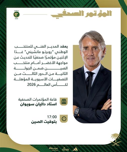 09月08日讯,沙特阿拉伯国家队官方公布消息,沙特男足主教练曼奇尼将于北京时间9月9日17:00在大连出席中国与沙特的赛前新闻发布会。