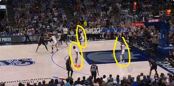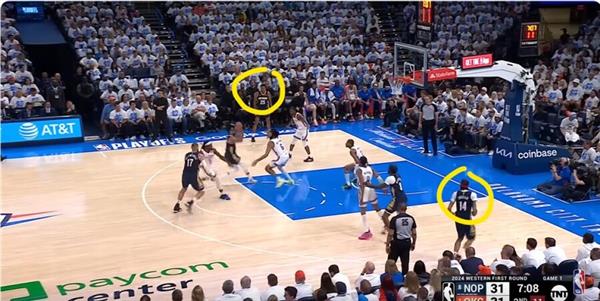 Figure1.Josh 在季后赛中,Giddey没有稳定的外线投射被完全放空。