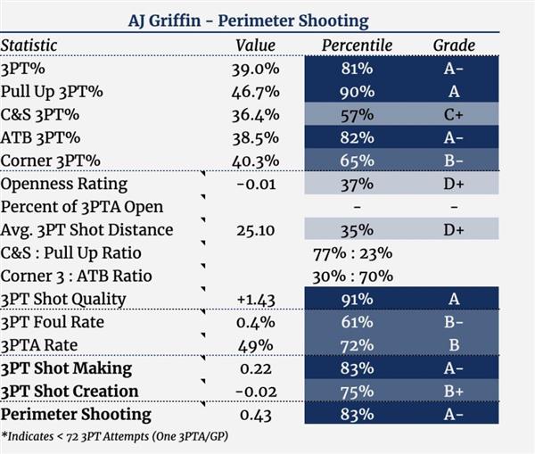 而大学赛季 A.J. Griffin 也就是以顶级投影手感作为卖点。