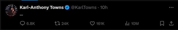 然而,突如其来的交易消息不仅震惊了KAT的经纪团队,也让这位多次为球队调整定位和技能组的老人留下了最无言的信息。
