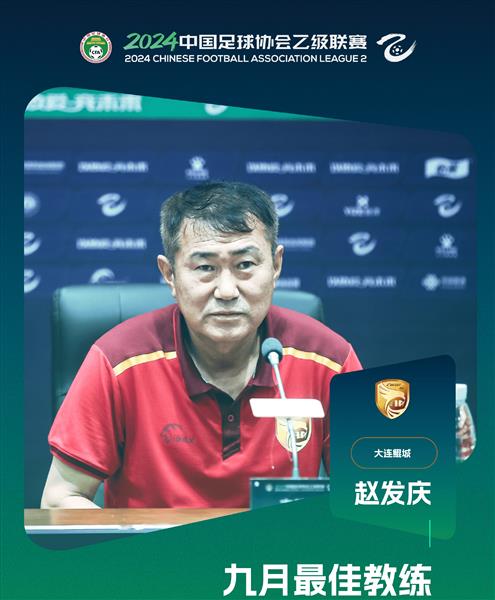 昨天,中国乙级联赛正式宣布,大连昆城主教练赵发庆当选9月份最佳主教练。球队在9月份的四场比赛中取得了三胜一负的优异成绩,并在接下来的10月份连续三场获胜,最终成功升级。赵发庆当选9月份最佳教练