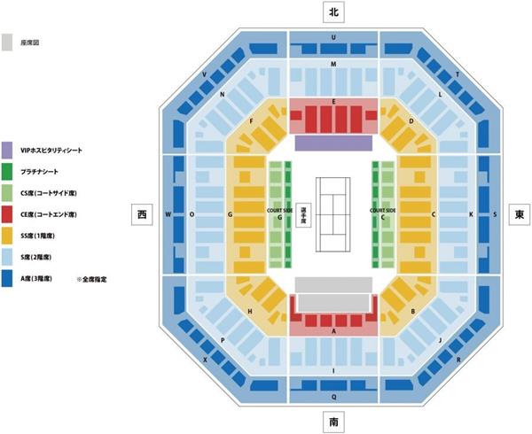 这次购买二楼S席(每张票)¥10000日圆),由电脑随机定位,周六半决赛坐在底线后面的M区,观看比赛相当舒适;周日决赛安排在L区,观看角度略有偏差,但总体来说还是可以接受的。