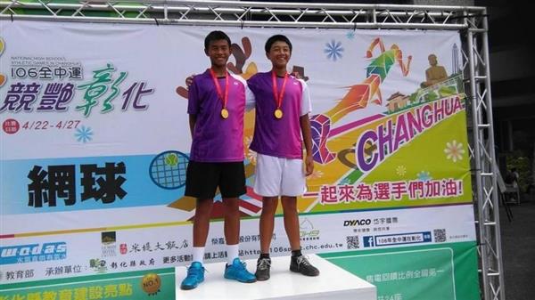 106年国中全运双打冠军 -汤城(右一)与黄榆翔左一)
