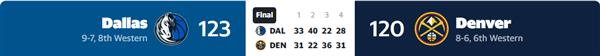 NBA cup死亡组C组热战今天继续进行。勇士队早早退役鹈鹕队,取得三连胜后,让追赶的金块感受到了独行侠的压力。双方今天在丹佛高原交手,混乱的相互交流让大家感到不安。独行侠一开始就在速度上领先,P.J. Washington和Dereck Lively II轮流冲击禁区,打出11:6的小高潮,再由Kyrieee Irving接手将差距带到双位数,但Nikola Jokic单节砍进10分支撑场面,Christian Braun在进攻上也取得了成就,就是把比分差锁定在2分。