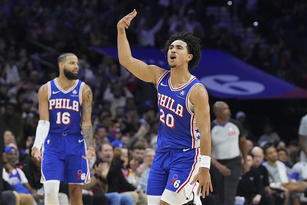 Jared McCain是2024年选秀的第16名,在11日对阵夏洛特黄蜂的比赛中,18投10中得到27分,其中23分集中在下半场和延长赛上,帮助球队以107分:105获胜。在13日对阵纽约尼克的比赛中,他以16投7中再次得到23分。第二天,他以26投12中,以34分10助攻的成绩对阵克里夫兰骑士。在这三场比赛中,他的外线命中率达到了42%。