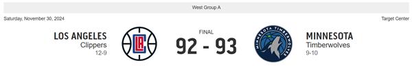 《NBA2024-25:05》NBA Cup小组赛即将结束。随着各组晋级形势的逐渐明朗,外卡门票的竞争即将白热化;A组快艇今天与灰狼正面交锋。虽然最近的情况差距很大,但防守已经成为战斗的焦点。依靠团队战斗力取得优势的灰狼在下半场遭遇了杰米 Harden突破成功,两次迎头赶上,更不用说取反领先,只是少主Anthony Edwards挺身而出,结束战局,后助队以93:92保持晋升的希望。