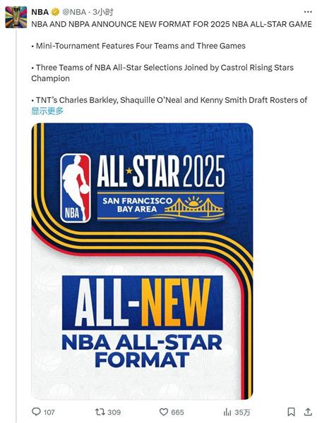 以前只有两支球队,都是东西部排名第一的教练。现在助教有机会执教。24名全明星分为三支球队,每支球队有8名球员!巴克利、奥尼尔和肯尼-史密斯是TNT解说员的球队经理,他们选择了自己的名单。坎迪斯-帕克,WNBA著名球员,担任新秀队经理。