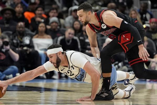 然而,这场比赛 Dosunmu缺阵, Josh Giddey跟随 Lonzo Ball、 Matas Buzelis也缺席了, Dalen Terry有机会在这个赛季迎来第一次开始,看起来是想利用它。在防守中,Terry的作用,压制 Young。