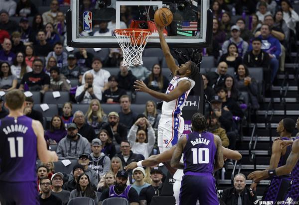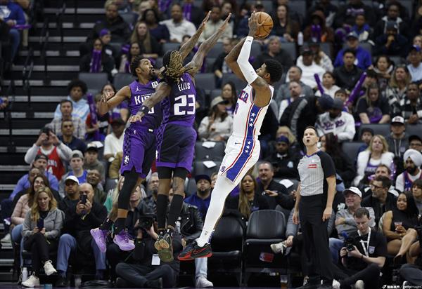 第三节,七六人外线大开。不仅两大主力PG和Maxey,Yabusele还利用Sabonis不愿意守住三分线外的空档,投进两个外线。七六人单节前七次三分球投进六球。PG、Maxey、Yabusele在第三节得到30分。国王相对矮小的后场一个个被PG点击。Maxey一直点名国王的内线球员出来吃零食。第三节,七六个人带着鼻子走了。即使Fox在第四节比较肯塔基学弟Maxey,他也一直在挑选Drummond点名单追分,但是Calebeb Martin、Maxey、Gordon又轮番贡献火力,Maxey在比赛最后3分34秒抄截快攻得手,帮助七六人保持9分领先。