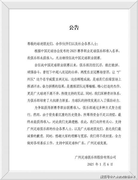 | 上一篇:广州队解散太冤!球迷的希望与现实的 | 下一篇:广州队未列入准入名单,李帅支持重生 |