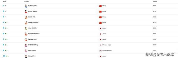 接下来是王艺迪和陈幸同,早田希娜的张本美和,以及新进入世界前十的大藤沙月,然后是郑怡静的孙颖莎和伊藤美诚。
