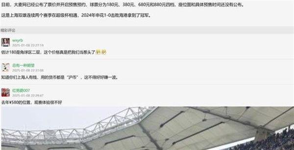超级杯球票价格,引发了申花、海港两队球迷的大讨论。
