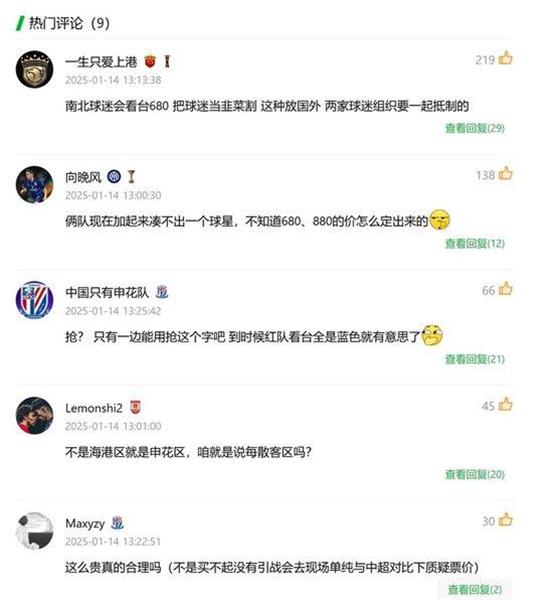“南北球迷会看台,价格680元。如果没有这个原因,那就是把粉丝当韭菜割。这种事情放在欧洲,即使两个粉丝有仇,也会联合起来反对。”网友“一生只爱上香港”的留言获得了高票点赞,吸引了更多网友加入话题讨论。