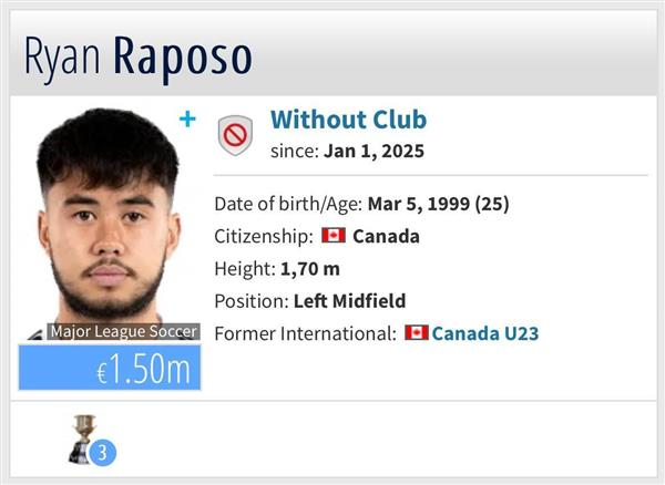在温哥华白浪效力五年之前,伍小海25岁的他德转身价格为150万欧元。