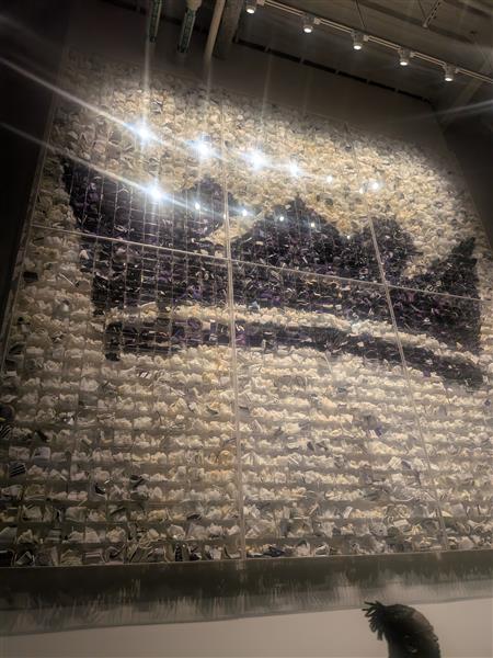 这个大墙用废弃的口罩、手套等做成皇冠国王的Logo。.