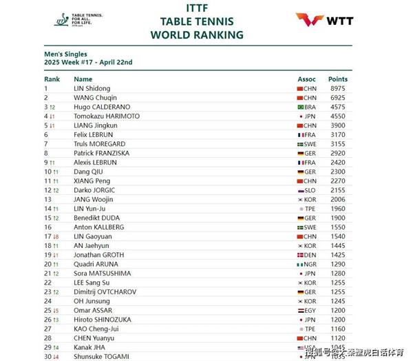 这主要受两个因素影响,一是2025年澳门世界杯新积分增加,二是去年澳门世界杯和WTT哈维若夫支线赛旧积分失效。