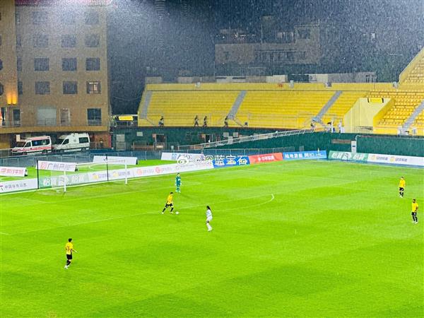 记者王敌指出:“暴雨倾盆、雷声轰鸣,广东广州豹与佛山南狮的下半场比赛被迫推迟。由于大雨冲刷,越秀山的场地工作人员不得不在中场休息时进行重绘场地线。受到雷雨影响,中场休息时间长达45分钟,比赛直到21点才得以恢复。根据规定,闪电与雷声间隔超过6秒,比赛才能继续进行。”