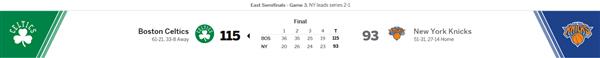 【东区季后赛决赛 ? 塞尔提克(2) vs 尼克(3)】