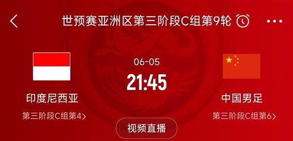 世预赛亚洲区18强赛C组第9轮,印尼队将在主场迎战中国队,比赛时间定于北京时间6月5日21点45分。在前八轮比赛中,中国男足取得了2场胜利和6场失利,积累了6分,位列小组最后一名。