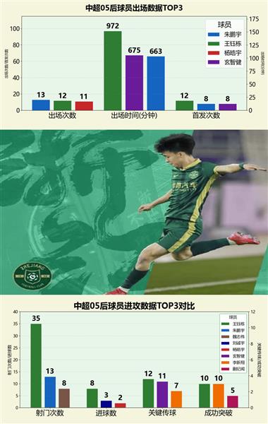 在05国青的联赛出场人数上,他们目前已经有多人达到双位数。考虑到本赛季中超联赛才进行到第13轮,除了王钰栋、朱鹏宇和杨皓宇已经提前达标外,到赛季结束时,玄智健和李新翔(已经有9次出场)等人很可能也能达到两位数的出场次数。因此,05国青的人才广度明显超过85国青。