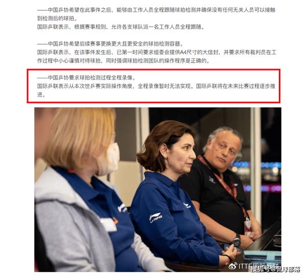 现在又曝光了一个监控视频,网友也在网上上传了截图,要求国际乒乓球联盟彻底调查,因为真正损坏球拍的人已经浮出水面,很多球迷认定自己是当时比赛的裁判。