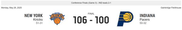 Siakam和PascalTyrese Haliburton站出来抵御反击,但KAT只杀了一个篮框,用单节20分的疯狂表现,带领大苹果来到顶端,从追赶者变成了守护胜利的人。进入决胜时刻前场面有些混乱,看谁的罚球能稳住军心。最后一场比赛前1分37秒,双方都回到了原点。在Brunson高难度投篮命中后,他们将领先2分。他们不想让领先的尼克溜走。关键麻辣锅与高压对抗后,他们将以106领先。:100系列扳回一个城市。