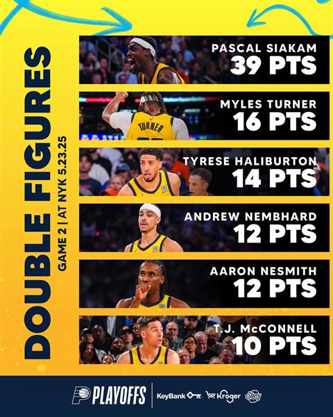 溜马有 Haliburton 跟基本盘由Siakam支撑(前者 14 分 8 篮板 11 助攻;後者 39 分 5 篮板 3 助攻),搭配一个有攻有守的锋卫,让尼克在攻防两端不断消耗体力。不管对方在进攻端打得怎么样,拿到球权就是「跑」,尼克只要恍神漏人就会丢分;防守端从后场开始给持球者施加压力,搭配合适的夹子,偶尔对阵。 BrunsonBox-1、加强二三线协防等,不断丢掉问题给尼克解决,等待尼克球员体力下降,比赛节奏就掌握在溜马手中。