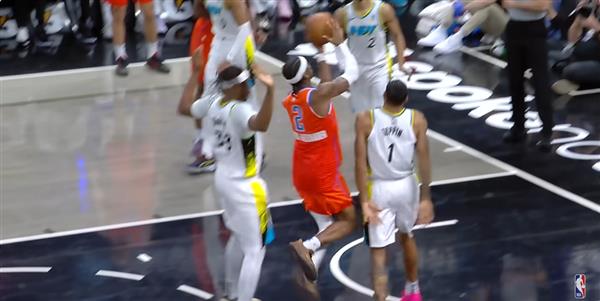 Figure 1. 西部雷霆vs狼的第一场比赛,即使身体扭曲成这样,他仍然可以稳定地投入2+1。他是一个真正柔软平衡的人。即使被触碰,他仍然可以矫正自己的身体。在此基础上,他很难保持投篮的稳定性。