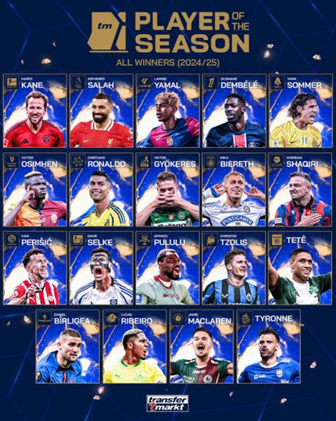 在西甲方面,最终选出了更加年轻的冠军得主亚马尔。这位天才少年在本赛季的35场西甲比赛中攻入9球,助攻15次。目前他的市场价值已达到1.8亿欧元,并有可能在即将到来的更新中进一步上升。